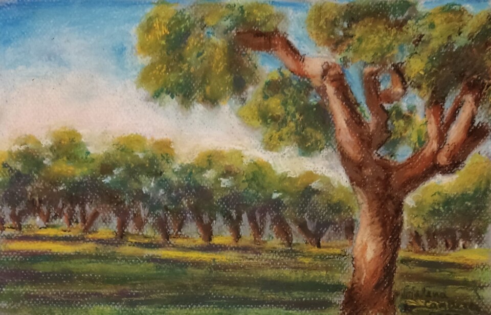 "Montado de sobro na primavera alentejana" (pastel de óleo),